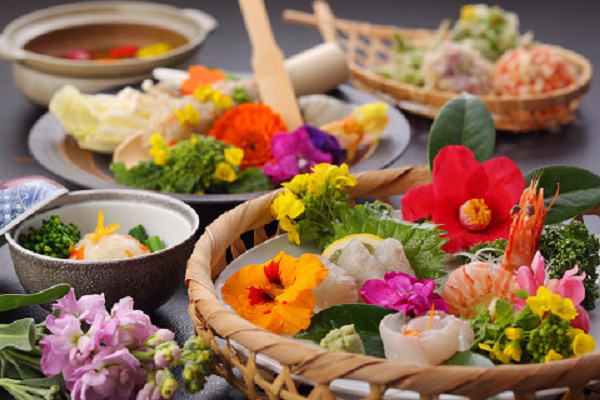 見て美しい食べておいしいお花料理を堪能していただきます。