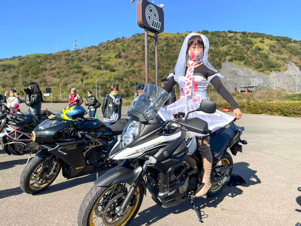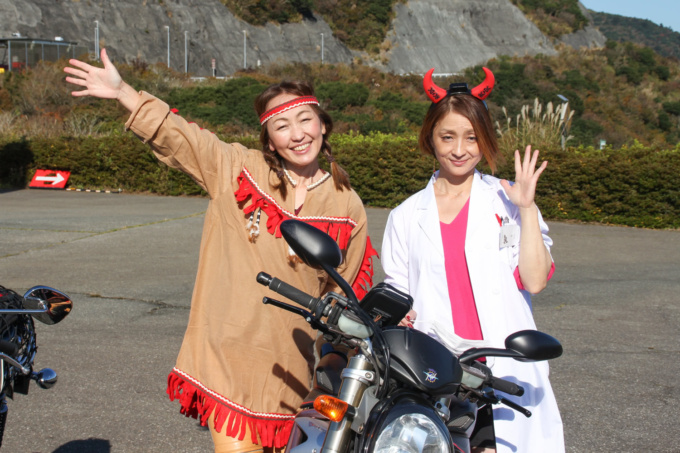 じつはこの日、本来ならば企業の出展が多数あり参加者も100名は下らないだろうという女性ライダー向けのイベントが開催される予定だったのです。が、時世を見て延期を決定。しかし日程的にはバイクを乗るには最高の季節。動きやすくなってきたこともあって「集まりたい!」という声が上がりました。ちょうどハロウィン前日というタイミングでもあったので、“仮装(仮装なしでもOK)をして気軽に集まり写真を撮ろう”というプチイベントの開催となりました。