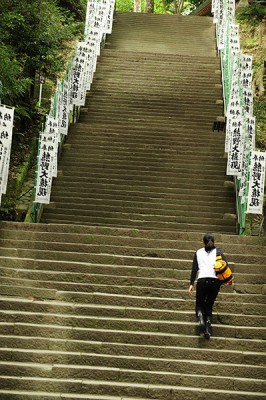言わずと知れた日本全国の熊野社の総本山。境内に掲げられた旗などで見ることのできる3本足の鳥のモチーフは蹴鞠の神・八咫烏。日本サッカー協会のマークもここから