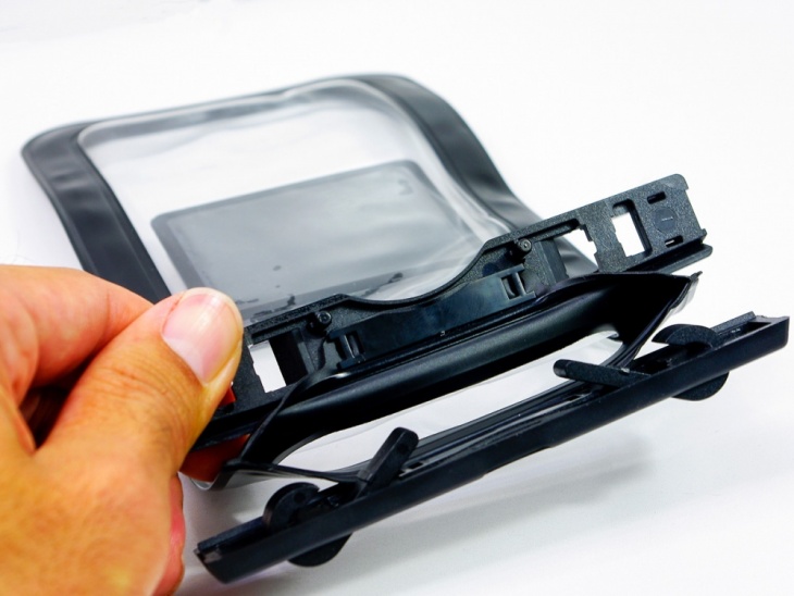 専用開発の防水チャックを採用することで、水深10mまでOK(IPX8相当)の防水性能を確保しつつ、iPhone8 plusなどにも対応可能な汎用設計となっているのがポイント。