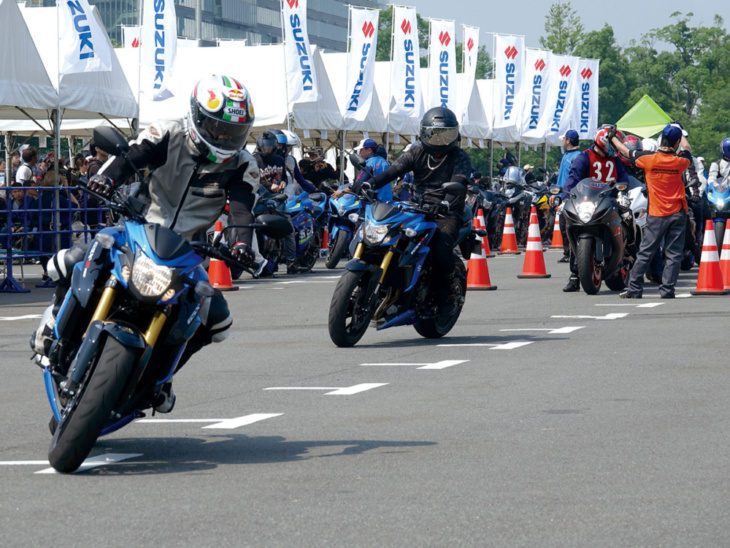 会場によってラインナップは異なるものの、試乗車には隼(ハヤブサ)やGSX-R1000R ABSといったフラッグシップモデルをはじめ、GSX-S1000/F ABS・Vストローム1000/XT ABS・SV650/X ABSなどの大型バイクを多数ラインナップ。