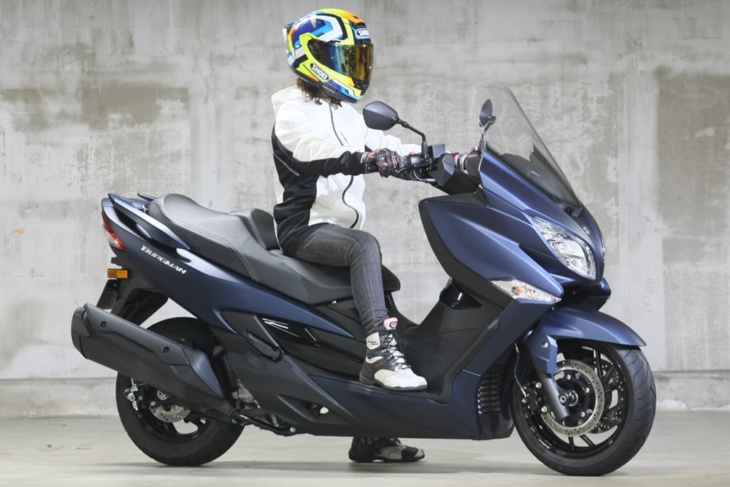 車体は大きいが、シートの前方に腰を据えれば両足がつくので安心感が大きい。ビックスクーターのステップボードの広さによって足つきが悪くなることもあるが、カットフロアボードを採用することによって足をしっかり下におろすことが可能。スマートになったステップボードだが、狭く感じることはなく、むしろ快適に足を乗せていられる。