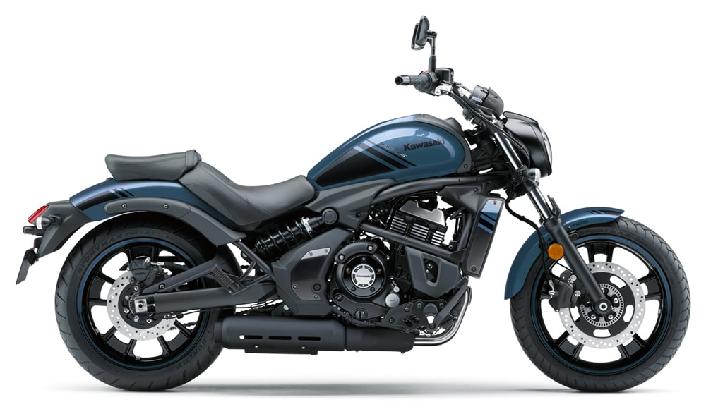 足つきはまったく問題なく、両足がしっかり地面を捉えてくれる。またがったまま足でバイクを移動させられるほどだった。クルーザータイプは重たいという印象だったが、起こしてみると軽くバランスも取りやすい。ハンドルが手前側へ伸びているので女性でも操舵性に問題はなさそう。またステップも遠からず近からず。どの身長の人にも適したポジションを取りやすいだろう。スタンドも車体の真ん中に位置しているので、出し入れのしづらさは感じなかった。