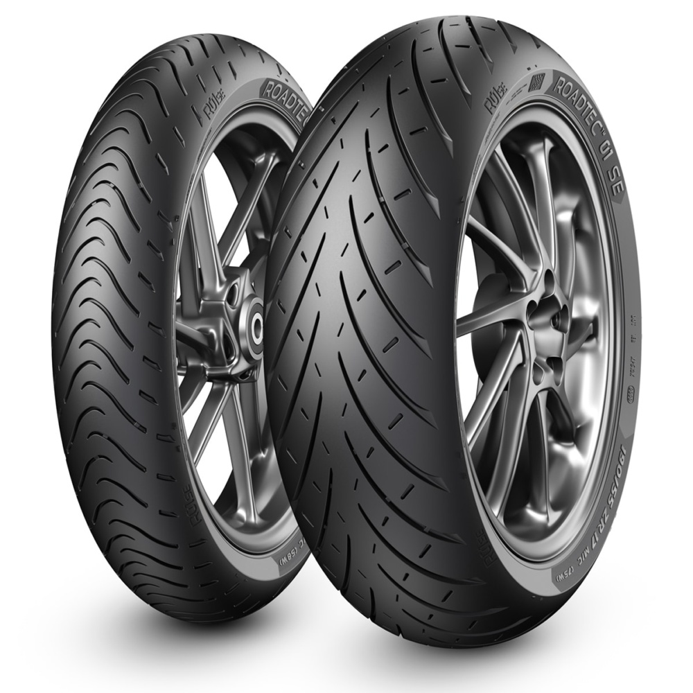 ロードテック 01 SEはロードテック 01の進化形で、ハンドリングを改善しつつスポーティなパフォーマンスをさらに高めた仕様を追求。ネイキッドやスーパースポーツ、スポーツツーリングモデル向けとなっている。フロントタイヤはロードテック 01で採用されたフルシリカコンパウドの最新バージョンを継承しつつ、低摩擦係数の路面でもすぐれたグリップ力が得られるようトレッドパターンを研究。構造も改良されたことで俊敏性と操縦安定性の向上をさらに追求したとのこと。一方のリヤはハイコンパウンドを採用していて、より深いバンク角でも快適性と安全性を追求。フロント・リヤともに深いバンク角でスポーツ走行をしても高性能を維持できるようトレッドパターンを研究しているとのことだ。