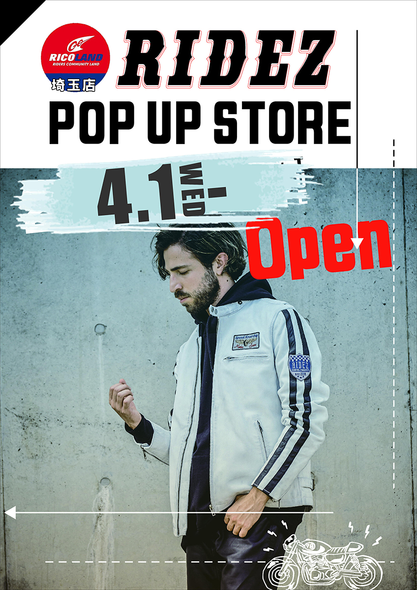 レザーウエアなどを主に取り扱うRIDEZが4月1日からポップアップストアを展開中で、会場はライコランド埼玉店の目玉製品を扱うZコーナーだ。