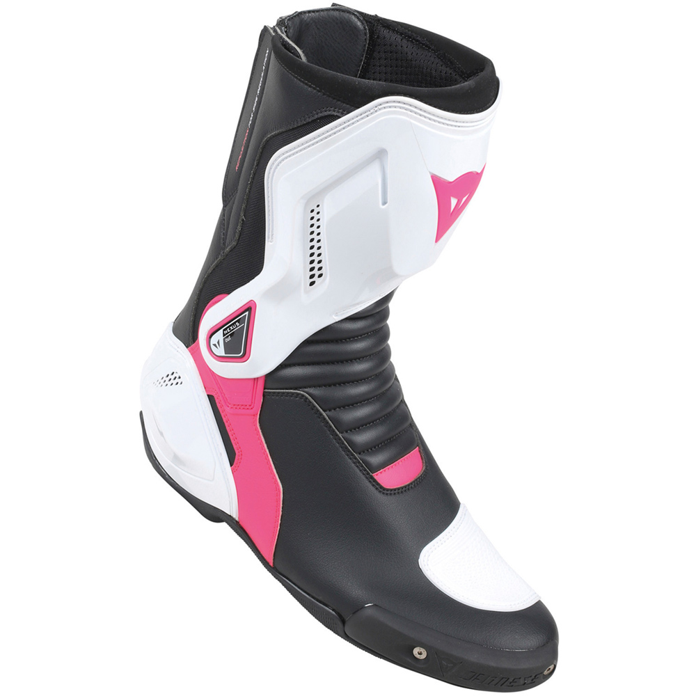 基本的には足首からふくらはぎまでが隠れるモノが主流となっており、可動部分はシャーリングを用いるなどして動きやすく設計されている。転倒に備えて各部にプロテクション機能を持たせ、万が一足がバイクの下敷きになってしまった場合でもケガを最小限に抑えてくれる。バンク角によっては足が地面に触れてしまうため摩擦力軽減を目的としたスライダーがツマ先や足の外側に配されている。価格帯は2万円~7万円ほど。