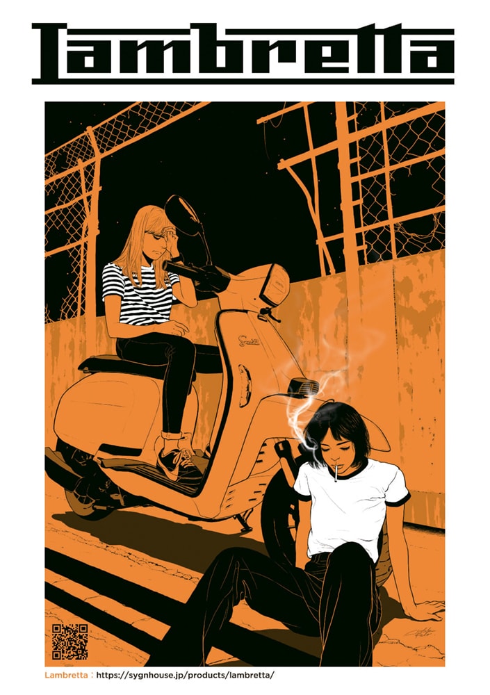 FANTIC CABALLERO Flat Track250のオーナーであり、広告やCDジャケットのイラストを手掛ける人気アーティストの加藤ノブキ氏とLambrettaがコラボレーション。こちらの作品はヨーロピアンエクスペリエンス開催期間にも見ることができるぞ!