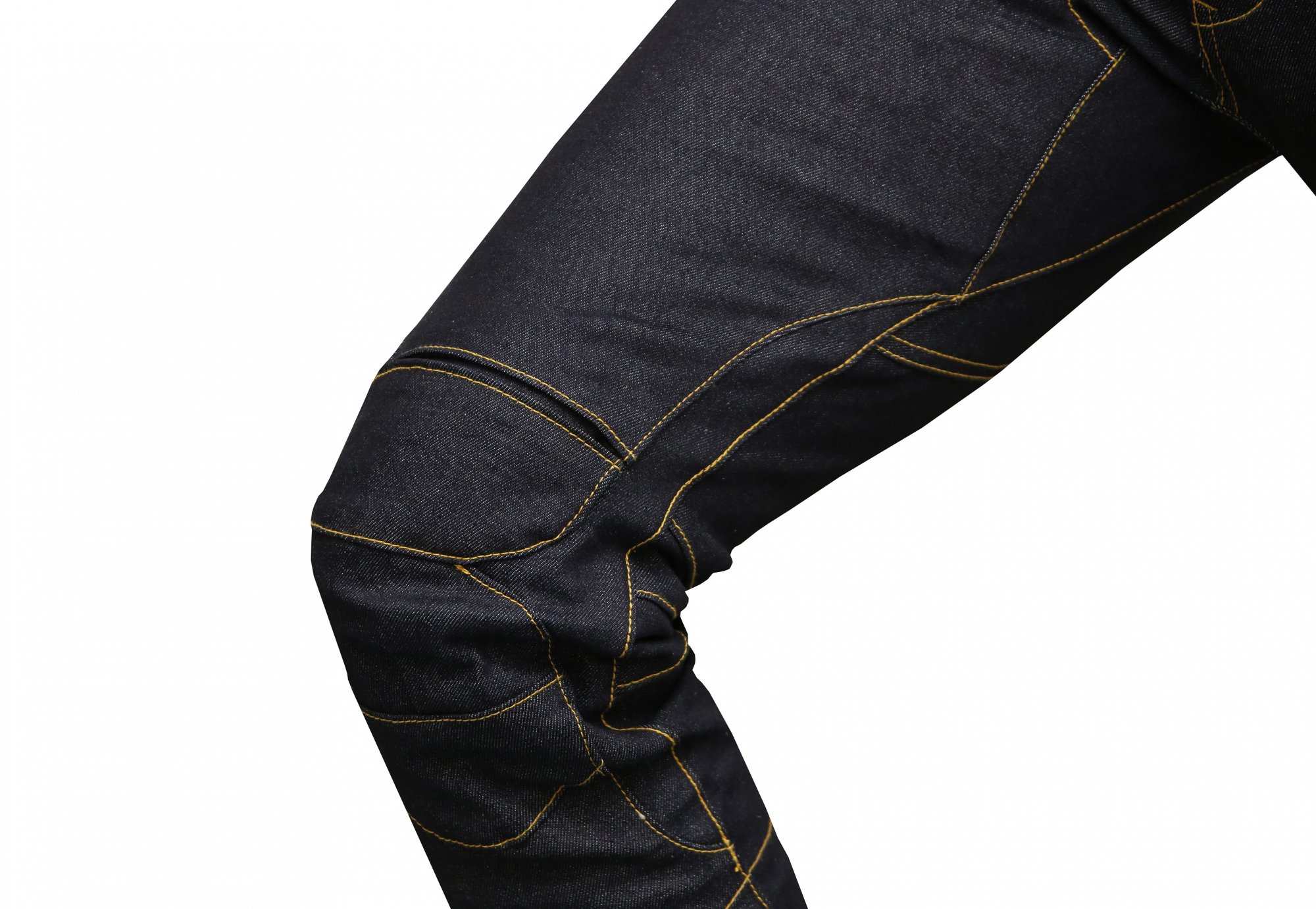 バイクに乗車した状態でデニムの立体形状パターンを製作し、体の動きを妨げずノンストレスな履き心地を実現。ライディングシーンではもちろん、車の運転や日常生活の中でのあらゆる動きに対応している。
