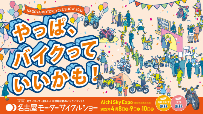 2020年に初開催を目指していた名古屋モーターサイクルショーだったが、開催直前に新型コロナウイルス感染症の発生・感染拡大のため2年連続で中止を余儀なくされていたため、今年2022年が初開催となった。その今回は国内車両4メーカーを筆頭に、ハーレーダビッドソンやBMW MOTORRAD、インディアンモーターサイクル、MVアグスタ、べネリ、ポラリス、トライアンフといった国内外の車両メーカー16ブランドが出展。さらにデイトナやNGK、アクティブ、プロト、デグナー、べスラなど多数のバイクパーツメーカーや関連団体も参加。ステージイベントなども開催され、盛況を博したとのことだ。
