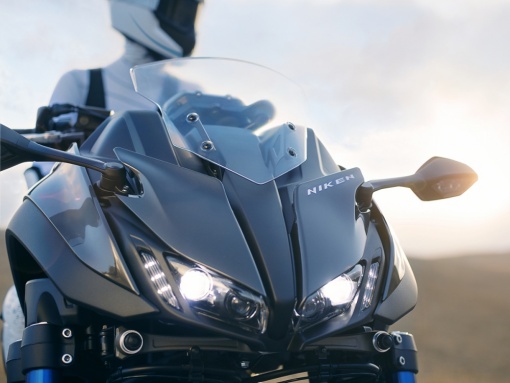 トリシティ125とトリシティ155に続く、LMW(リーニング・マルチ・ホイール)の第3弾として発表されたNIKEN。前2輪・後ろ1輪の3輪バイクであり、二輪車のようにリーンして曲がるという基本コンセプトはトリシティシリーズと共通してはいるものの、シティコミューターという位置付けだったトリシティシリーズとはまったく異なり、ワインディングロードでのエキサイティングな走りを追求したスポーツモデルに仕上げられています。
